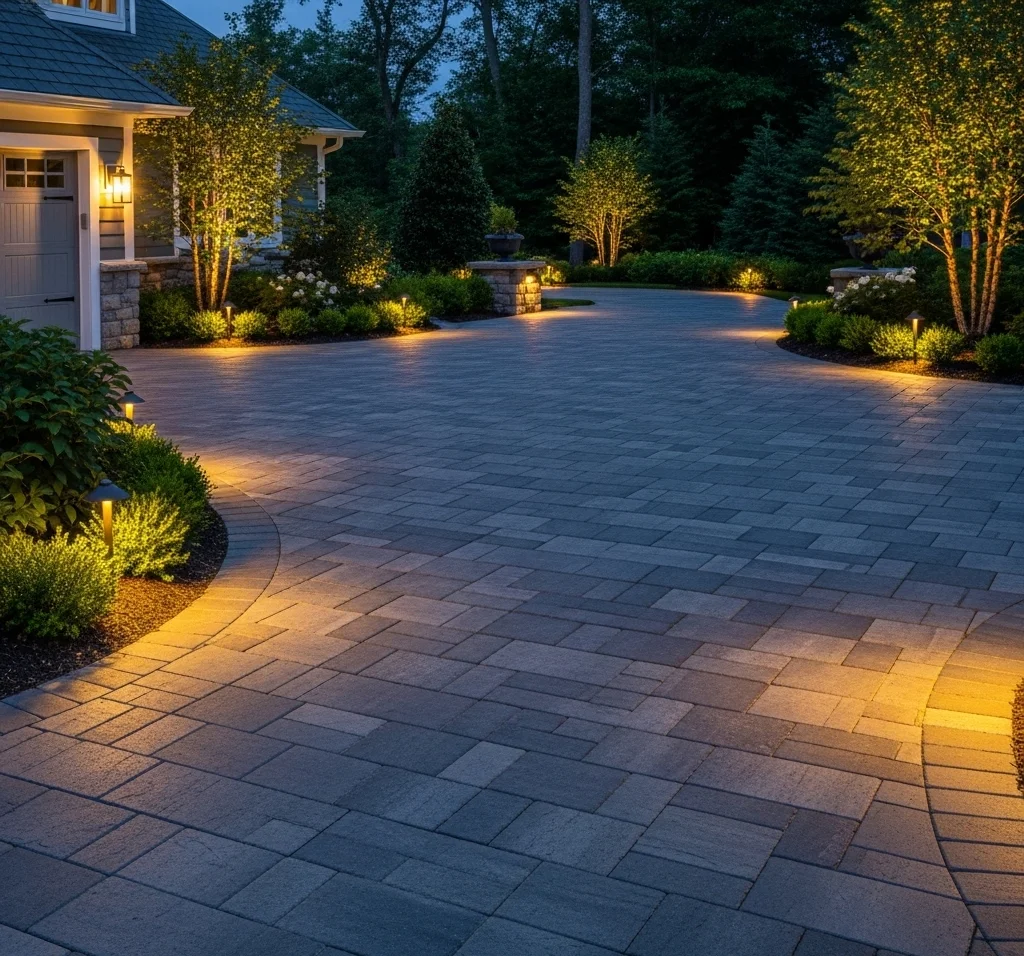 Driveway Pavers Illuminated: A Grand Entrance