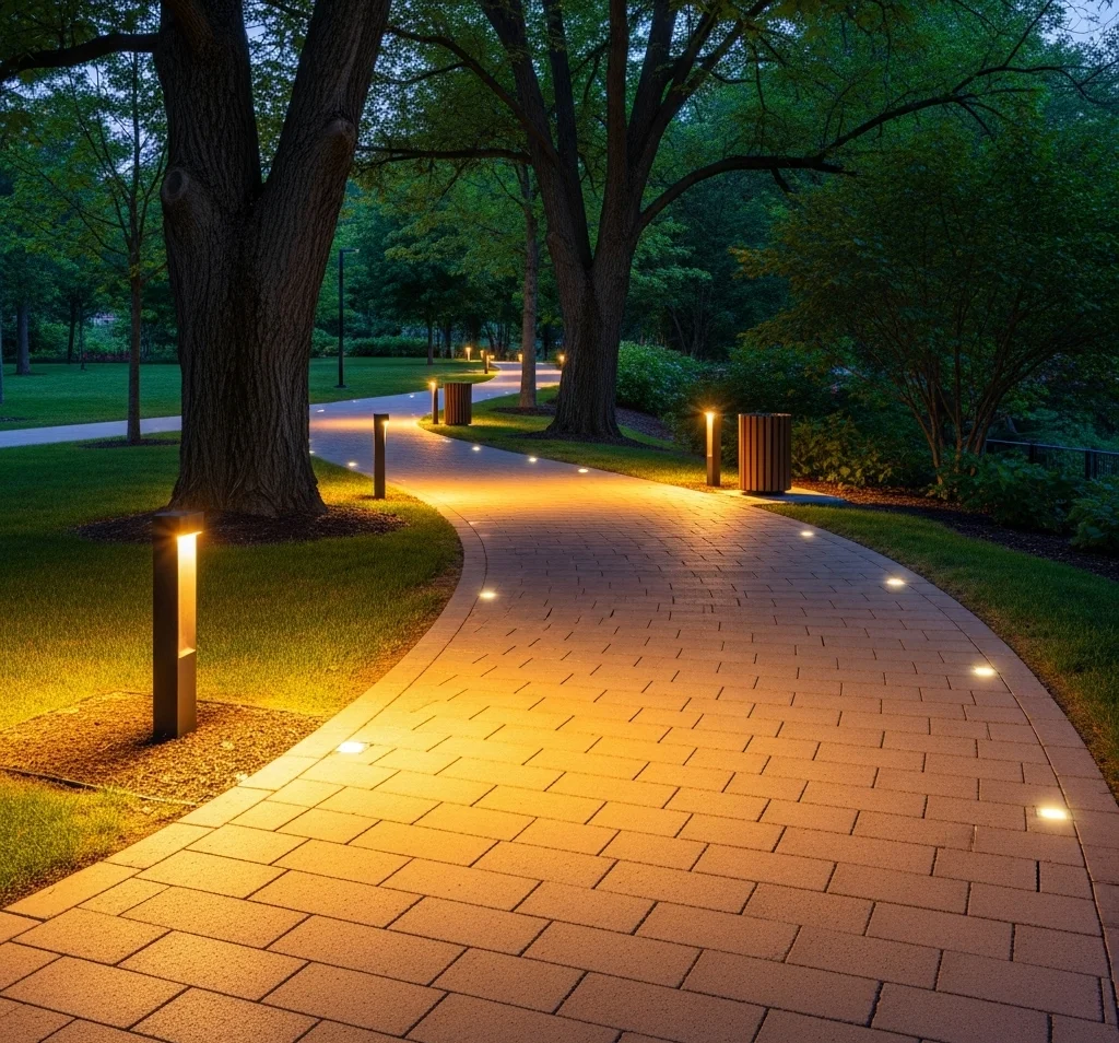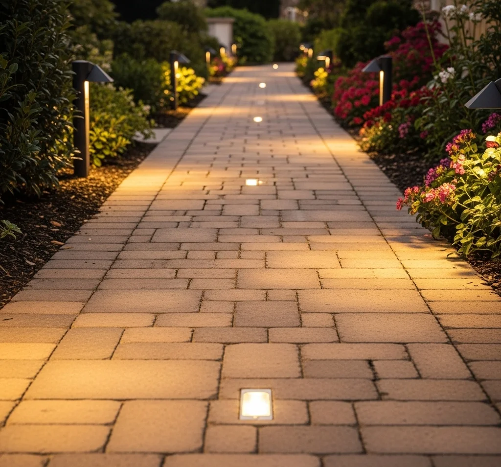 - In-Ground Lights Along Edges: For a very clean look, install in-ground lights directly along the very edge of your walkway pavers, providing a subtle outline.
