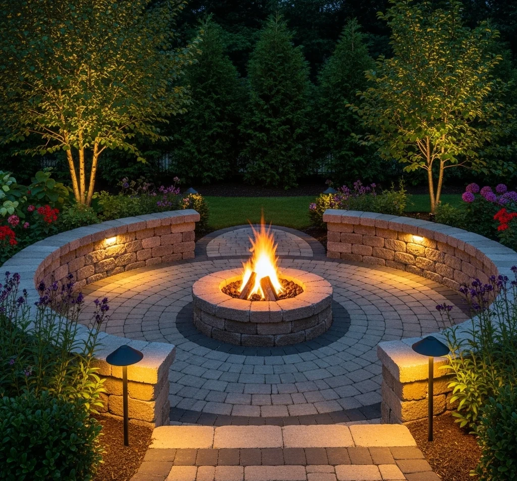 - Under-Cap Lighting for Seating Walls: Install LED strips beneath the capstones of any seating walls or retaining walls around your patio. This creates a soft, indirect glow that highlights the texture of the pavers and provides subtle ambient light. See how retaining walls can be enhanced.