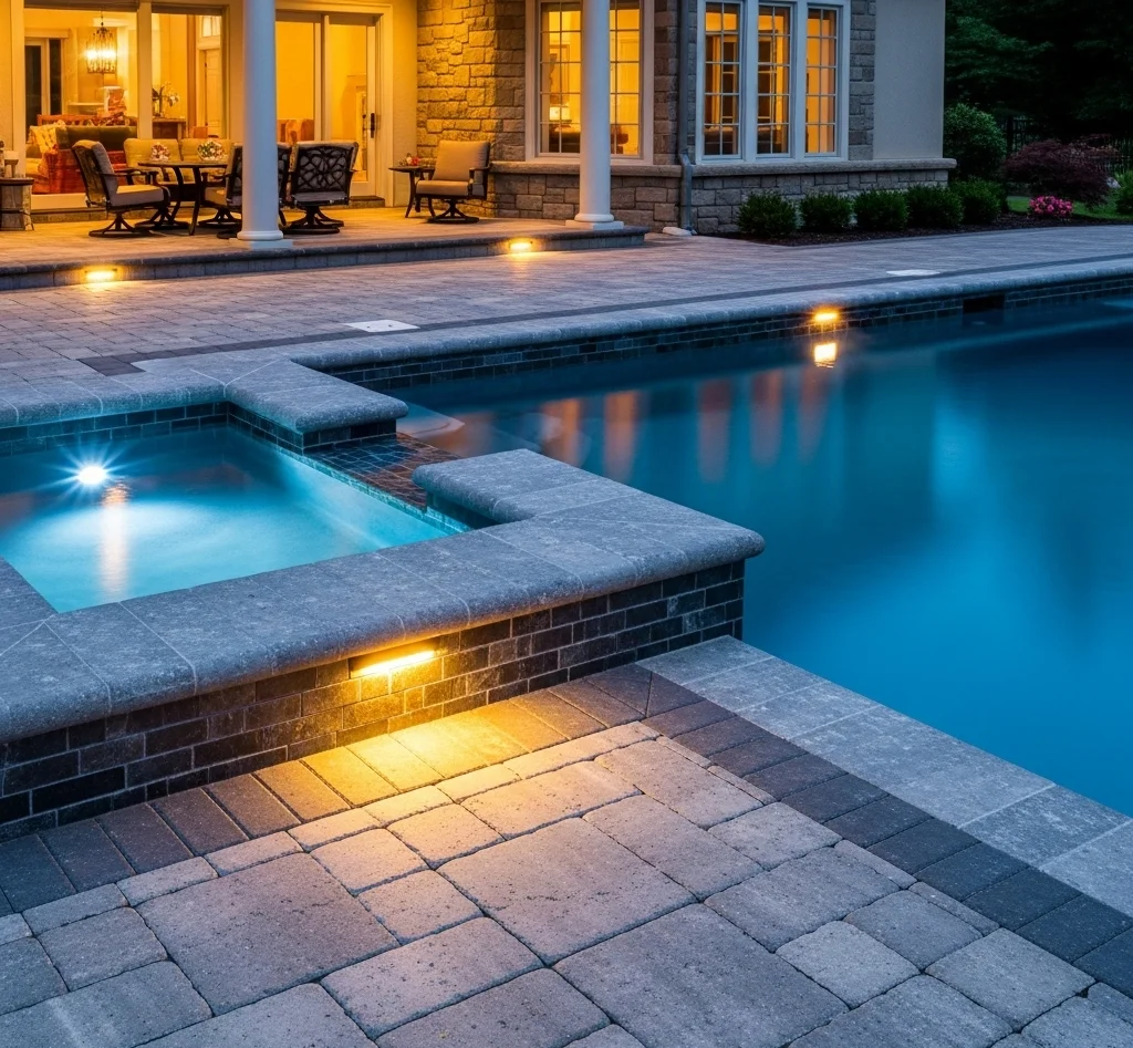 Combine lighting with your pool deck pavers to create a luxurious and safe poolside environment.