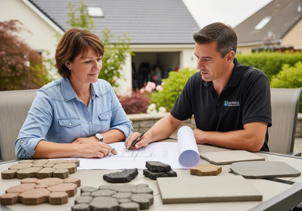 Design Development: Contractors create detailed plans showing paver patterns, drainage solutions, and integration with existing landscape features. Design plans include material specifications, quantities, and installation timeline estimates.