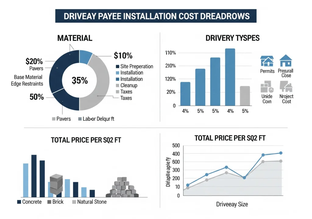 Paver Type and Quality: Basic concrete pavers cost $3-6 per square foot while premium natural stone options range $8-15 per square foot. Material selection significantly impacts total driveway pavers installation Concord CA investment.