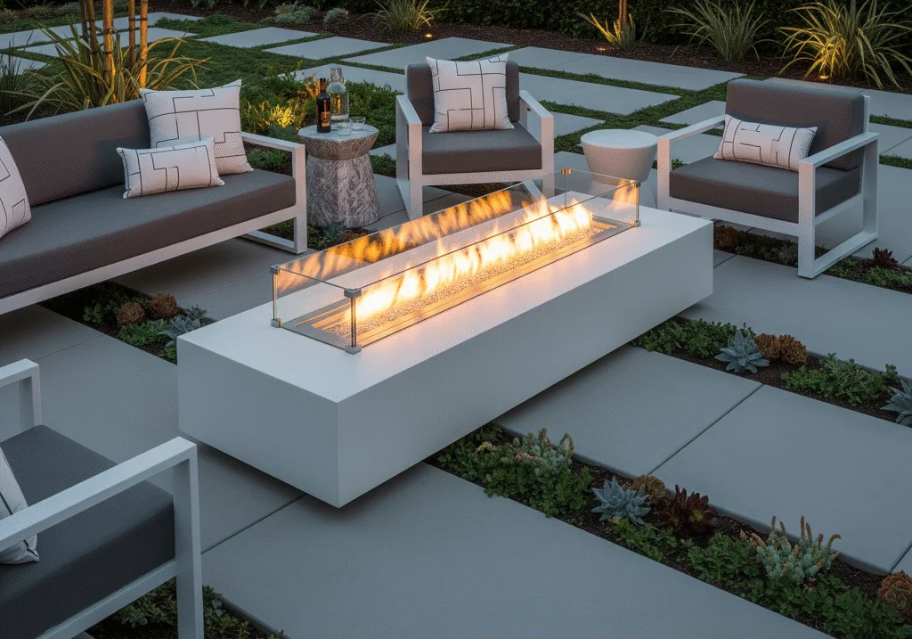 Linear fire pit Bay Area designs integrate beautifully with contemporary landscape elements including geometric paver patterns, minimalist plantings, and modern outdoor furniture. The clean lines and horizontal emphasis complement modern architectural styles prevalent throughout the Bay Area.