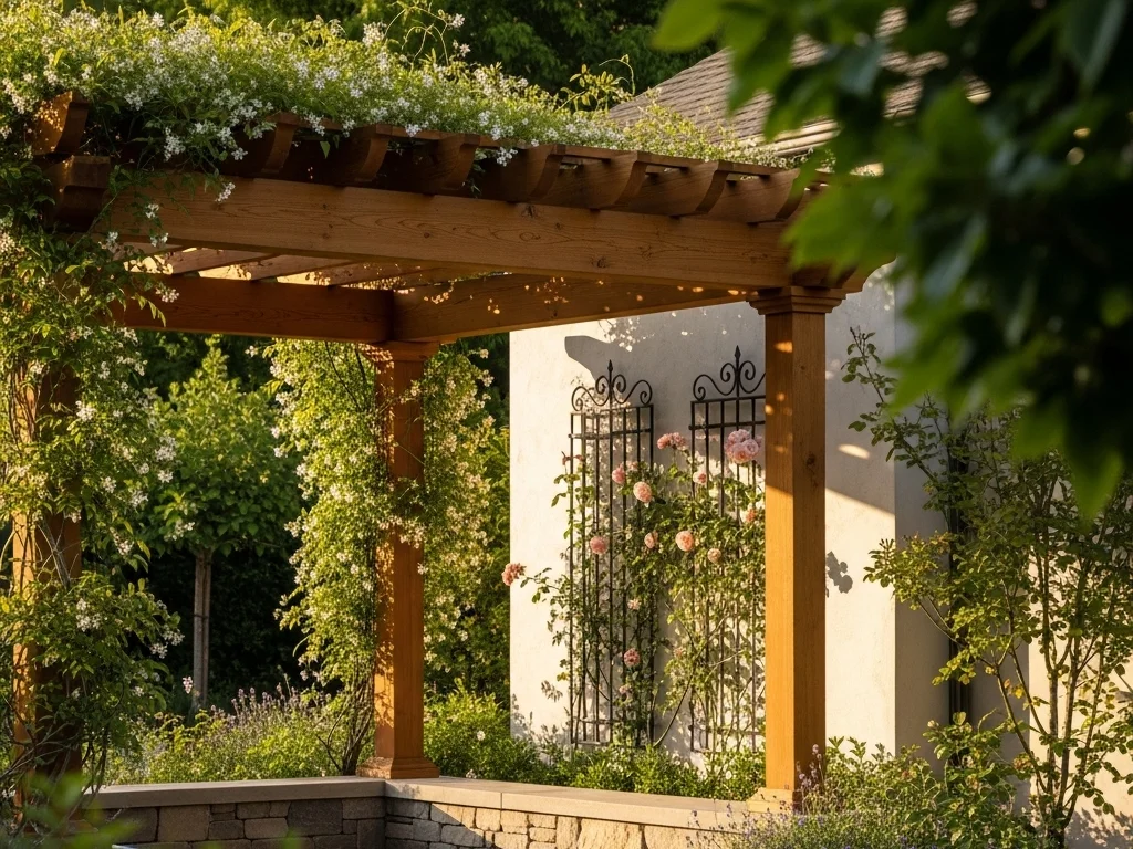 - Elegant Pergolas or Arbors: A charming pergola situated over a small, intimate seating area near your entrance, or an elegant arbor gracefully framing your main walkway, can create a truly striking focal point. These structures provide beneficial shade, add architectural beauty, and offer excellent support for climbing plants like fragrant wisteria, delicate jasmine, or classic climbing roses, adding lush greenery and breathtaking, fragrant blooms. You can learn more about our custom pergolas services.