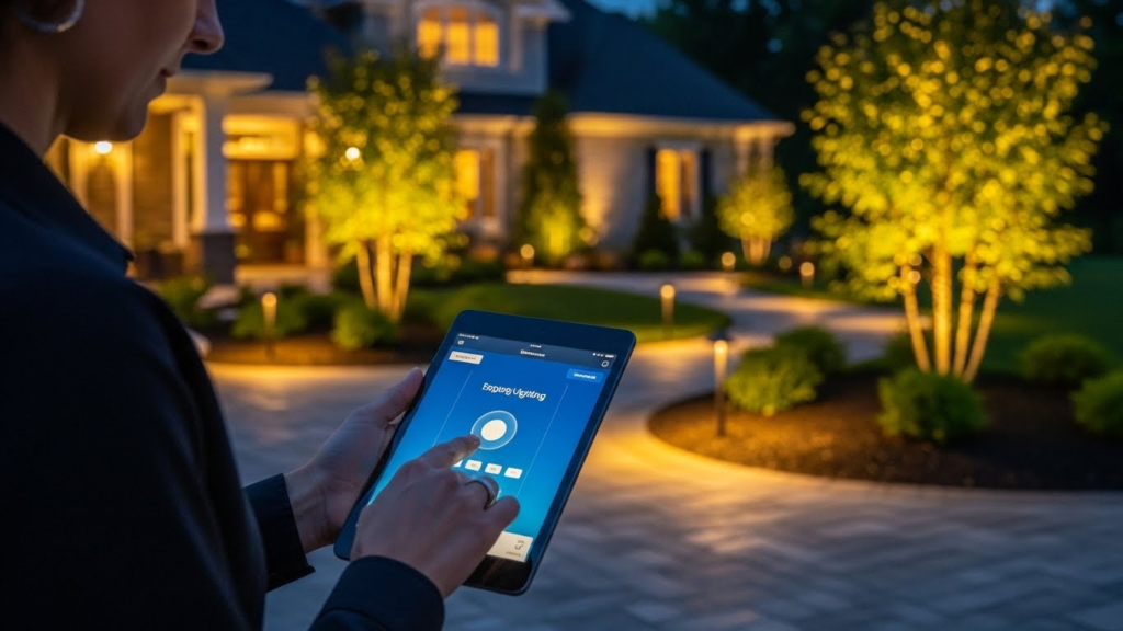 Professional outdoor lighting design requires proper electrical planning, including transformer sizing for low-voltage systems and ensuring adequate circuit capacity for 120V fixtures.