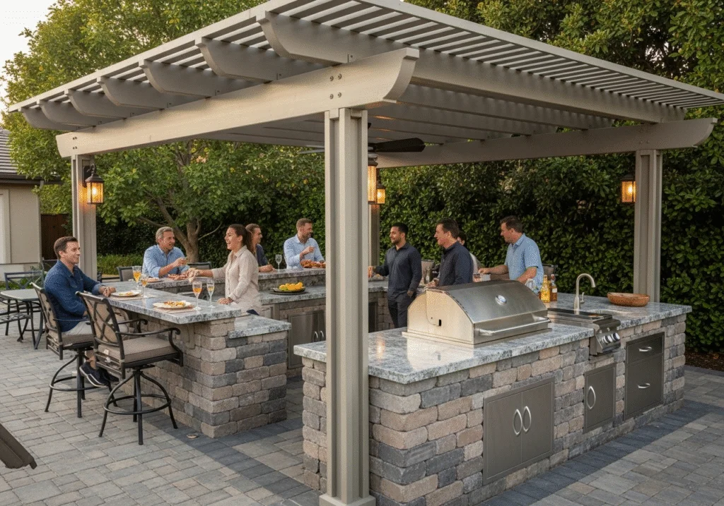 5. Pergola with Integrated Outdoor Kitchen or Bar: The Entertainer’s Dream Hub