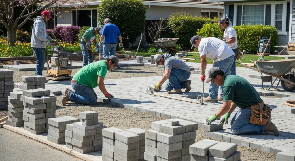 Spring landscaping pavers Concord California refers to the installation of interlocking paving stones, natural stone, brick, or concrete pavers as part of comprehensive spring outdoor renovation projects specifically designed for Concord’s climate, soil conditions, and architectural styles.